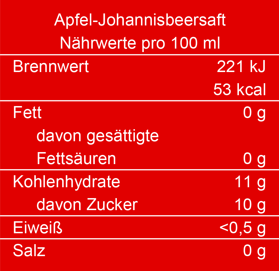 Unser roter Apfelino Mischsaft, Apfel-Johannisbeersaft, wird direkt gepresst und erhält seinen Top-Geschmack durch spezielle Fruchtmischungen.