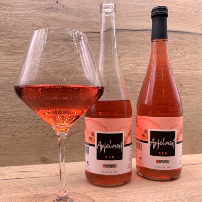 Unser Apfelino Apfelmost RED 0,75 l, Jahrgang 2020 mit 5,8 % vol., wird aus vollreifen, rotfleischigen, österreichischen Apfelsorten ohne Farbstoffe und ohne Zugabe von Sulfiten hergestellt.